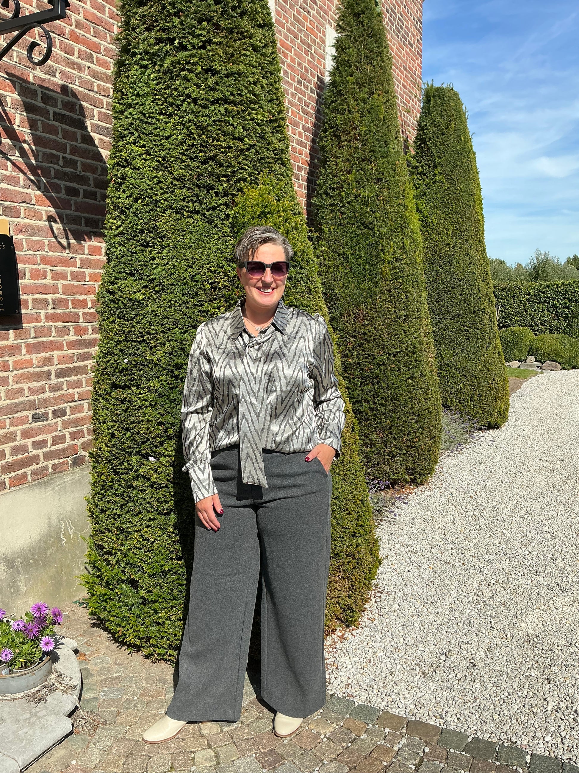 • Mouwen: Lange mouwen met manchetten en dubbele knoop